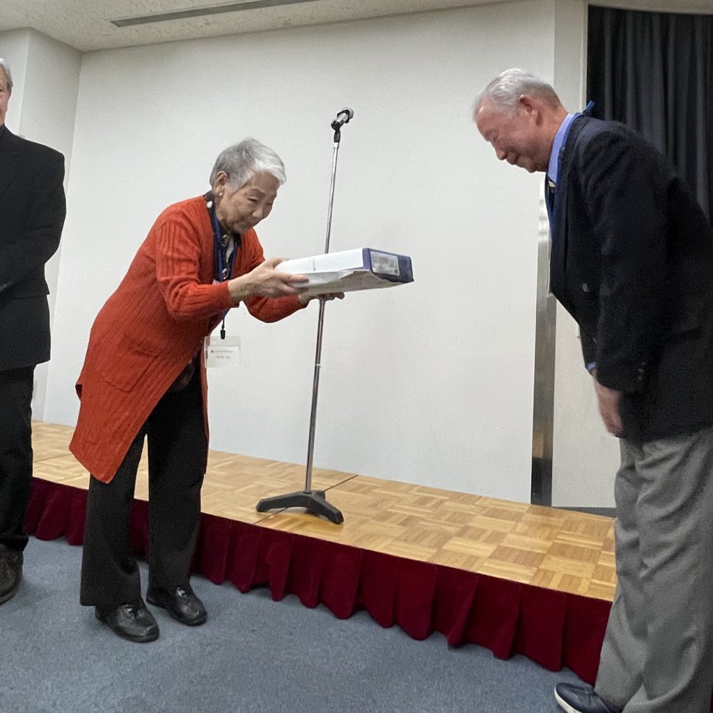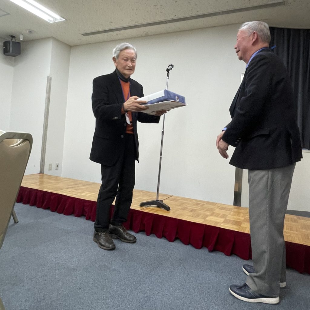 そして今回のメインイベントの一つが、ご長寿を迎えられた2名の方へのお祝いです。 これまでの歩みに敬意を表し、一同から心を込めて記念品の贈呈を行いました。 お二人の輝く笑顔に、会場全体が温かい拍手と幸せな空気に包まれた、感動的なひとときでした。